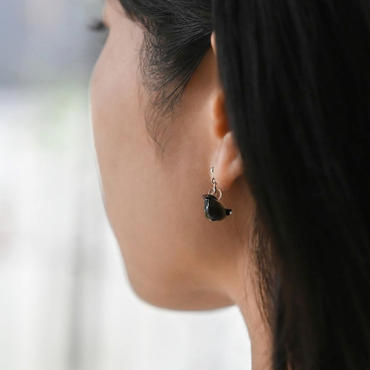 バーズワーズの陶器アート「PLUMP BIRD」の愛らしい姿が、ガラスのアクセサリーになりました。
