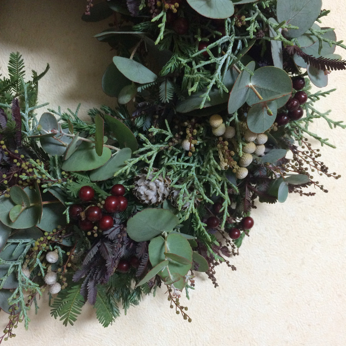 自然の香りと質感に触れながらつくるクリスマスリース。